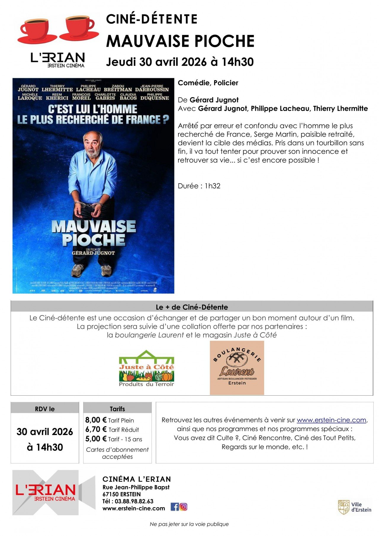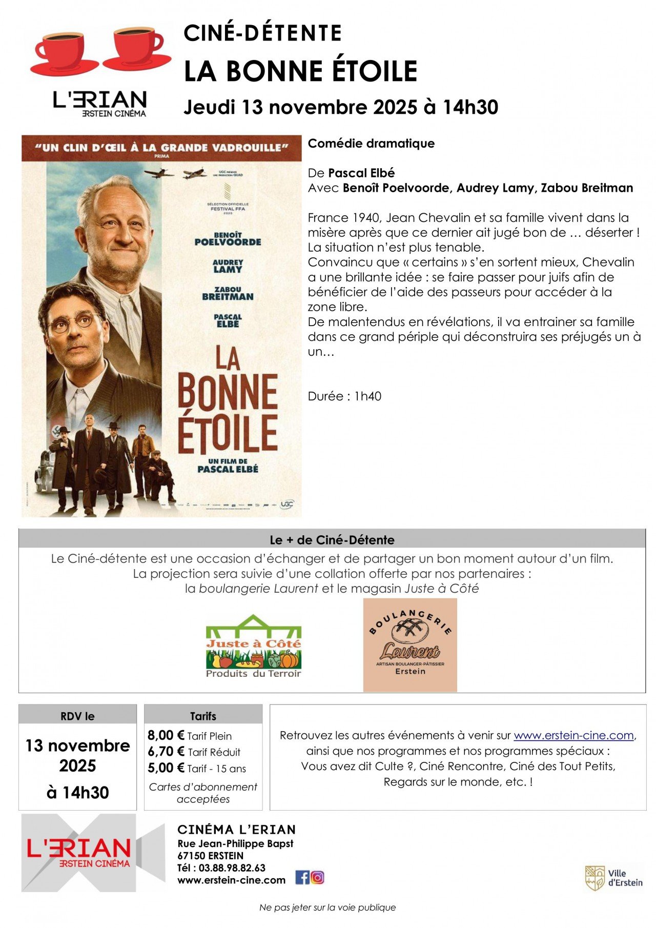 Actu ciné, avant première, évènements, découvrez toute l'actualité du L'Erian - Erstein.